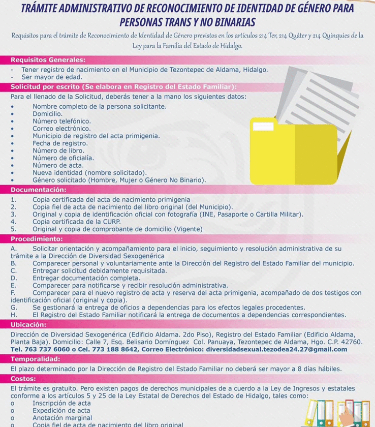 trámite administrativo de reconocimiento de identidad de género en actas de nacimiento serán gratuitos para personas trans y