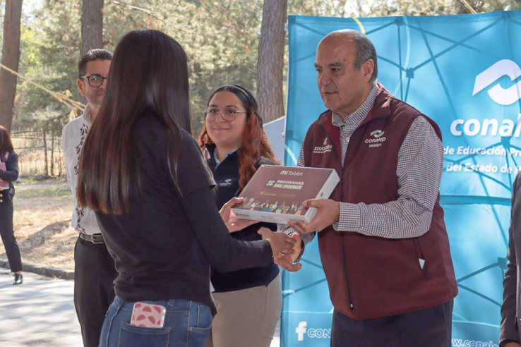 Pachuca, Hgo.- Como parte del compromiso del gobierno de Hidalgo, que encabeza Julio Menchaca Salazar, 560 estudiantes del Colegio de Educación Profesional Técnica (Conalep) plantel Tepeji del Río recibieron tabletas electrónicas dentro del Programa para la Transformación Educativa a través de Dispositivos Digitales Móviles.