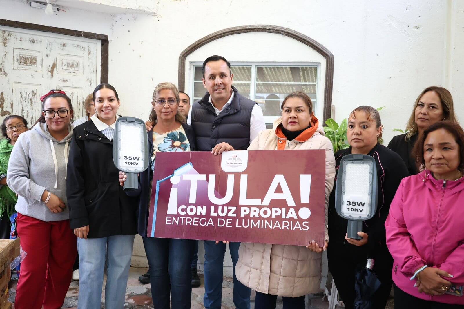 El presidente municipal Cristhian Martínez entregó apoyos de luminarias y cemento a la colonia UHP y el fraccionamiento Chapultepec en la Col. Jalpa