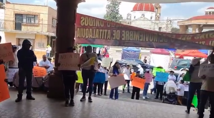 Comerciantes del tianguis que se instalan en el centro de Atitalaquia se manifestaron en la presidencia municipal, para rechazar su reubicación, afirmando que hasta el momento no han llegado a ningún acuerdo con la presidenta y dijeron que no aceptan la supuesta consulta ciudadana que propone la autoridad porque “estaría manipulada”.