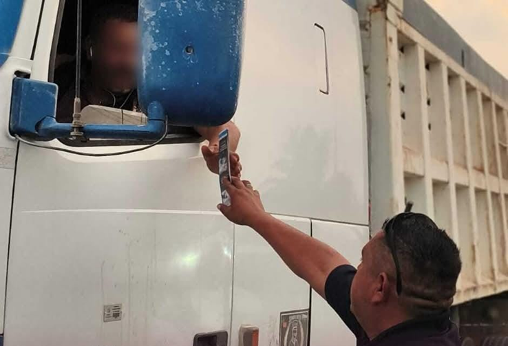 Elementos de tránsito salieron a las calles y reparten infografías a conductores promoviendo recomendaciones clave al ir frente a un volante.